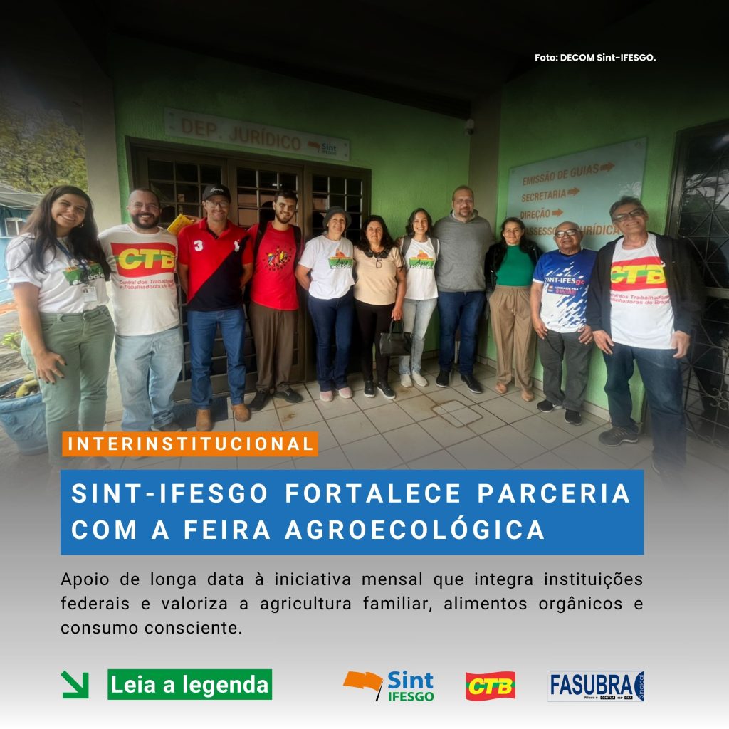 Parceria de longa data fortalece feira mensal que integra instituições federais e agricultura familiar em Goiás. Diretoria do Sint-IFESGO recebeu organizadores na manhã do dia