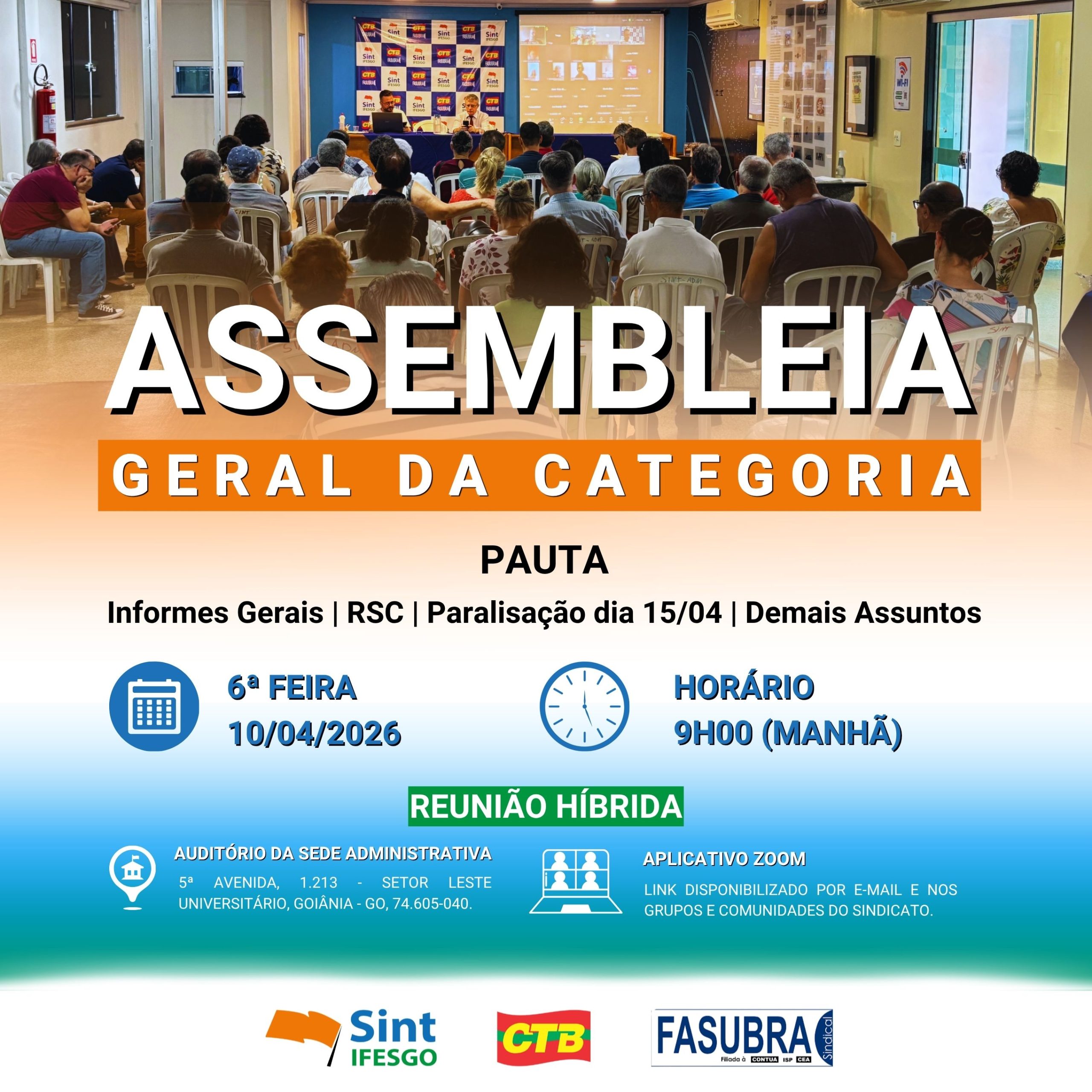 Encontro será realizado em formato híbrido, às 9h, e discutirá pautas da carreira, informes gerais e a mobilização nacional prevista para 15 de abril. O