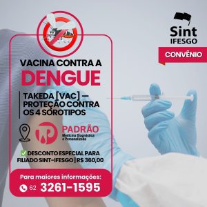 O Sint-IFESGO firmou parceria com o Laboratório Padrão para oferecer aos filiados acesso facilitado e com desconto à vacina TAKEDA [VAC], também conhecida como Qdenga.