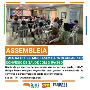 Diante do anúncio da descontinuidade de serviço do Ipasgo Saúde para com o vínculo com a UFG, convocamos todas/os TAEs usuárias/os do plano para Assembleia