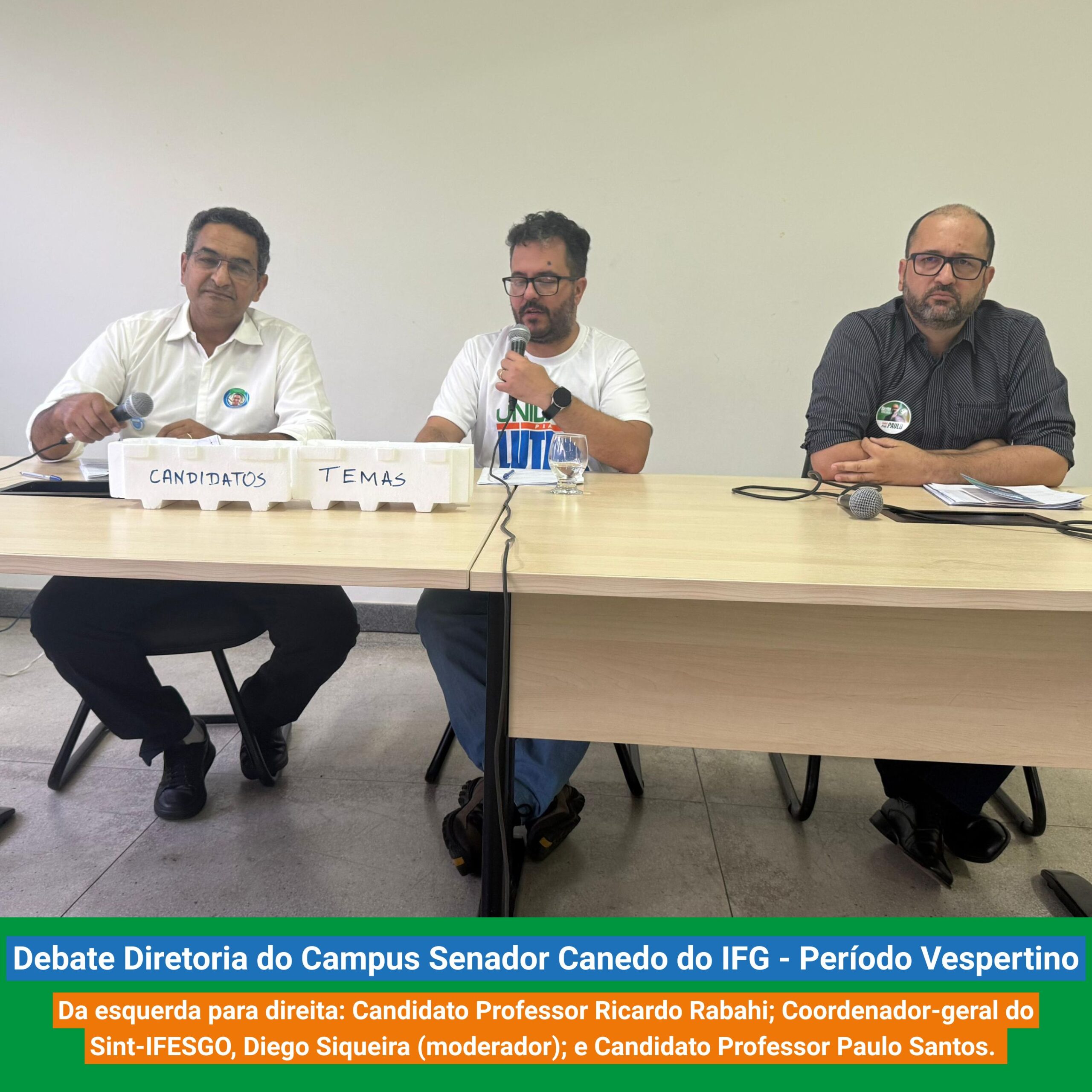 Na última semana, mais especificamente segunda-feira (9), o Coordenador-Geral do SINT-IFESGO, Diego Siqueira, atuou como mediador do debate entre os candidatos à Direção-Geral do Campus Senador Canedo, professores Ricardo Rabahi e Paulo Santos. O evento, marcado pelo respeito e pela proposta de fortalecimento da comunidade acadêmica, evidenciou o papel do sindicato como agente de promoção da democracia institucional.