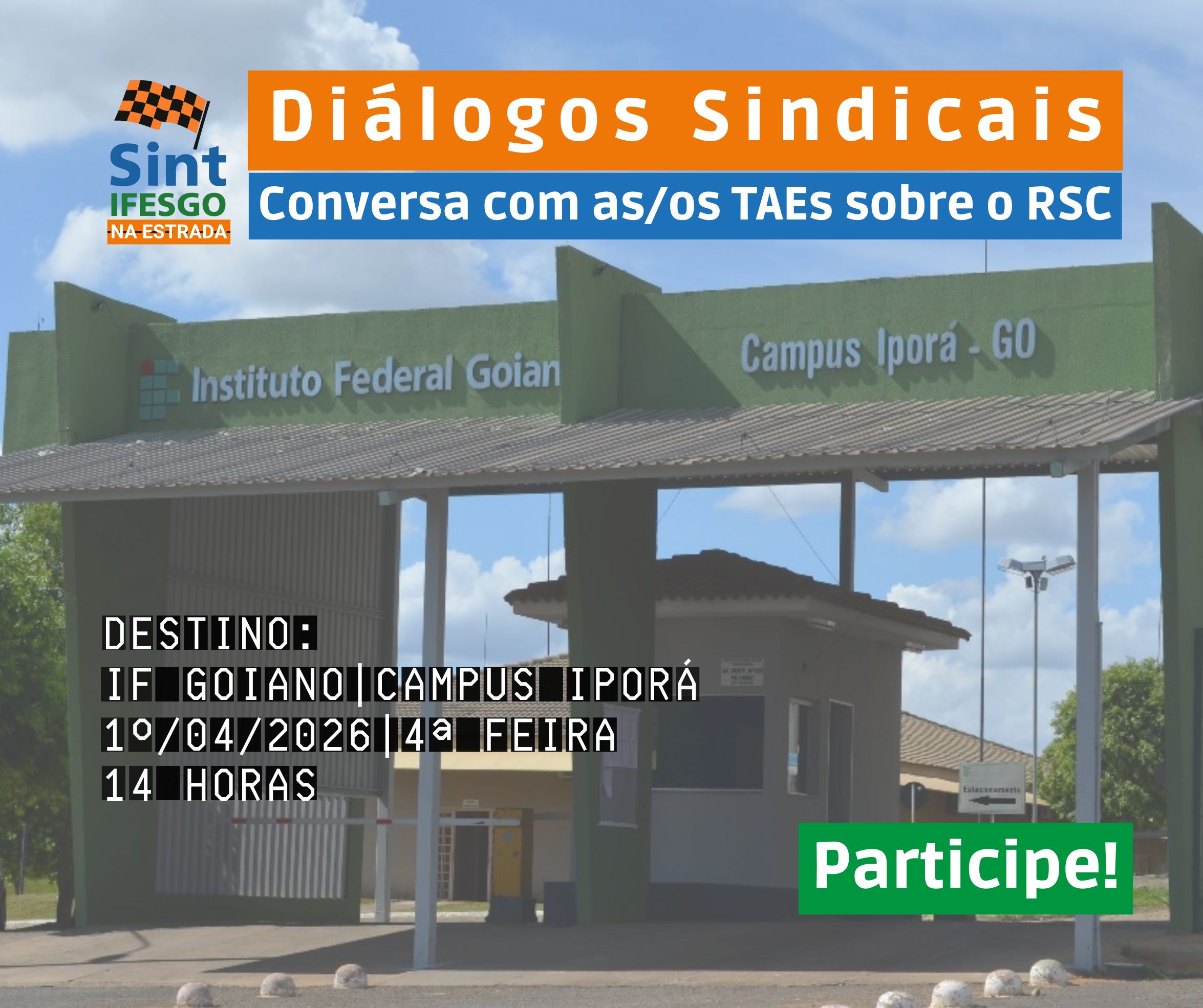 O Sint-IFESGO realiza, nesta quarta-feira, 1º de abril, mais uma importante agenda de mobilização junto à base. Os diretores do sindicato estarão no IF Goiano – Campus Iporá para dialogar com a categoria TAE sobre o Reconhecimento de Saberes e Competências (RSC), tema central para a valorização dos técnico-administrativos em educação.