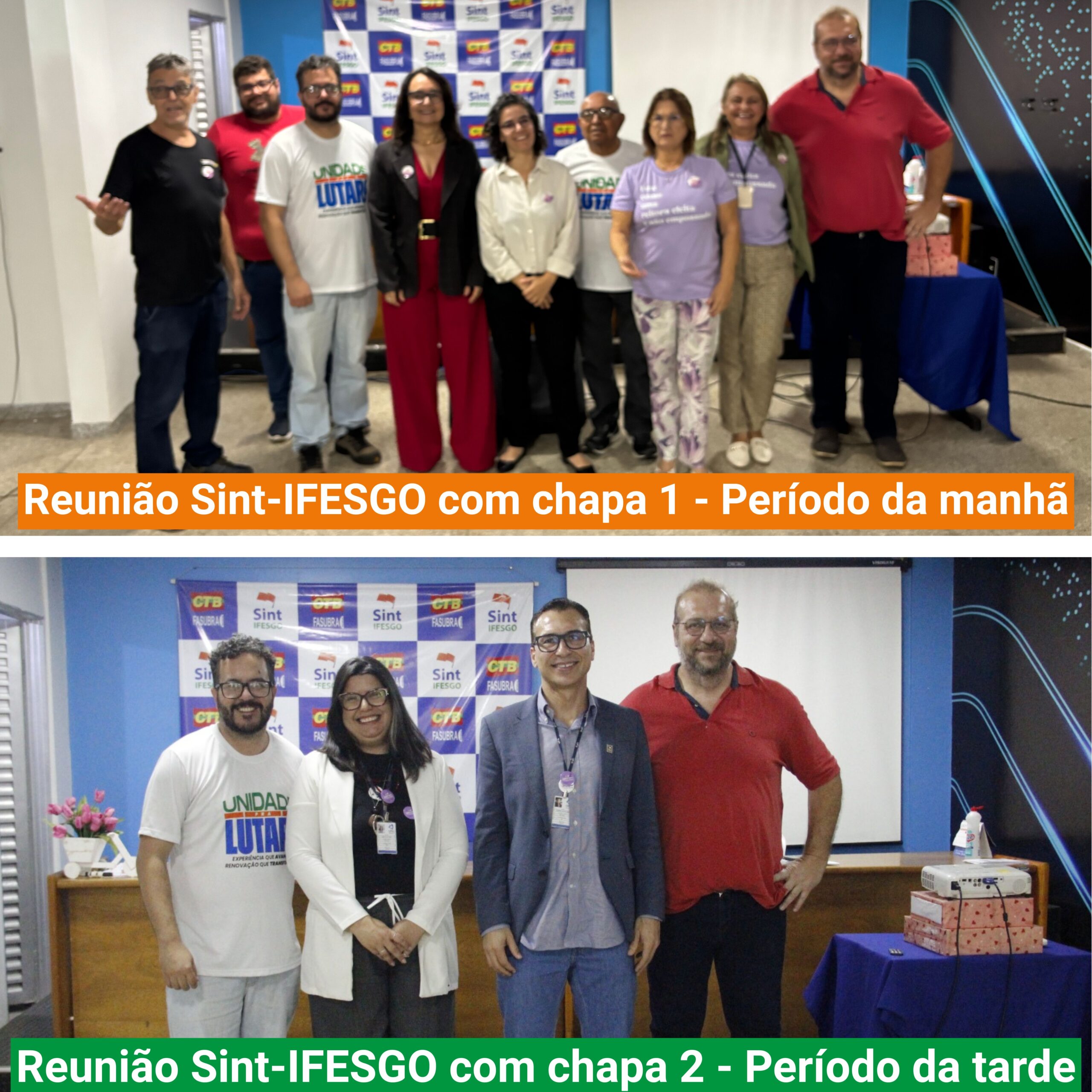 No período da tarde, das 14h às 15h, o Sint-IFESGO recebeu a Chapa 2 – UFG Agora com Você, representada pelos professores Karla Emmanuela e Eliomar Araújo. A reunião teve como foco principal o diálogo com a categoria dos técnico-administrativos em educação (TAEs), no contexto do processo eleitoral para a reitoria da Universidade Federal de Goiás (UFG).