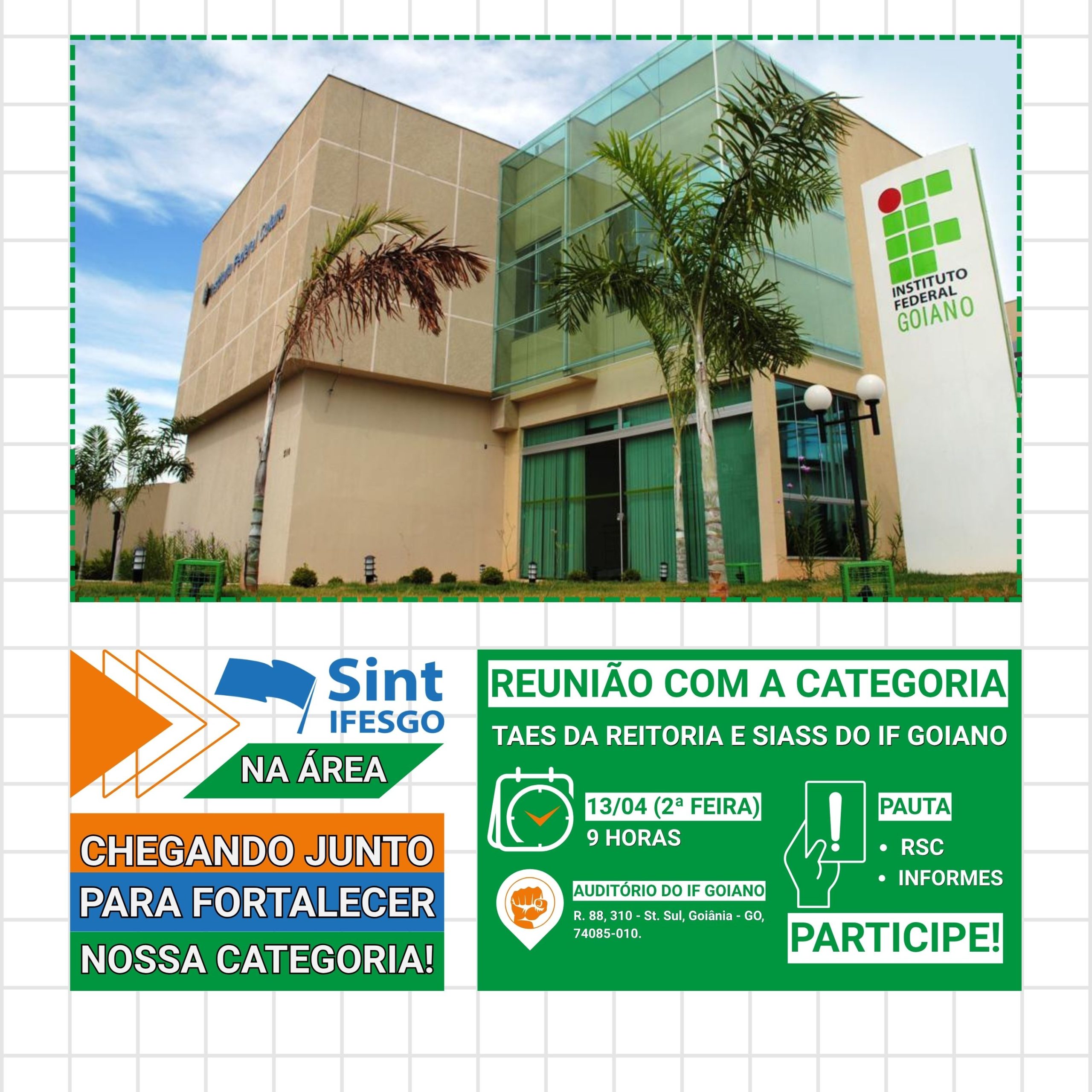 Encontro será realizado às 9h, no auditório da Reitoria, em Goiânia, e terá como pauta o RSC e informes de interesse da categoria.
