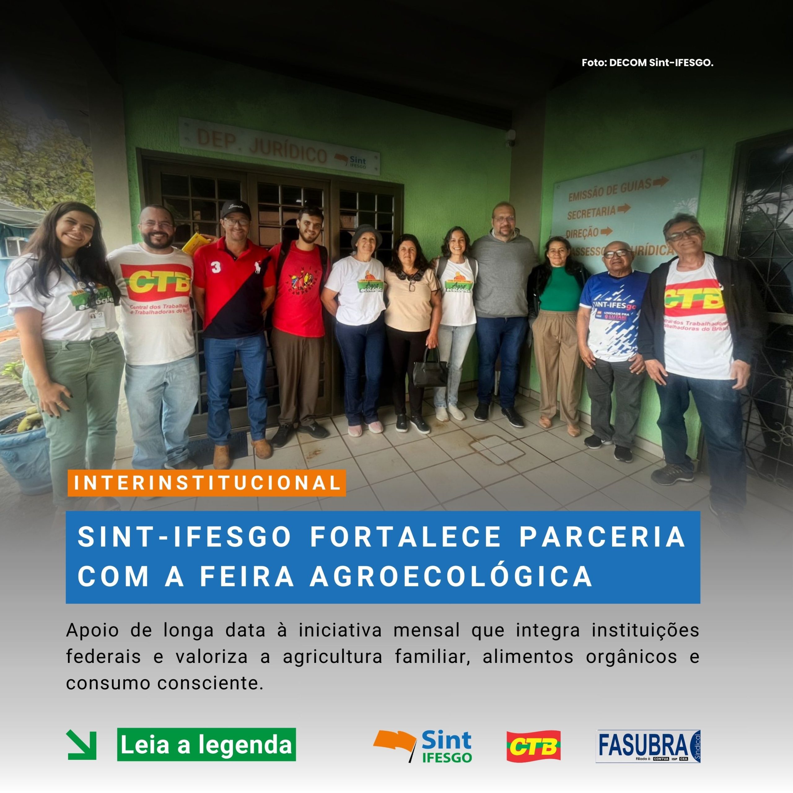Parceria de longa data fortalece feira mensal que integra instituições federais e agricultura familiar em Goiás. Diretoria do Sint-IFESGO recebeu organizadores na manhã do dia 24 e reafirmou o compromisso com alimentação saudável, agroecologia e economia local.