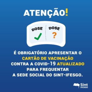 O SINT-IFESgo INFORMA A OBRIGATORIEDADE DA APRESENTAÇÃO DO CARTÃO DE VACINAÇÃO CONTRA COVID-19 PARA FREQUENTAR A SEDE SOCIAL