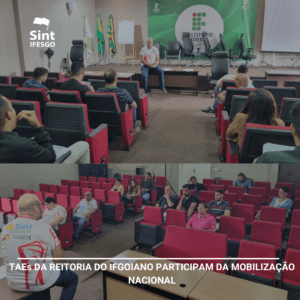 O Sint-IFESGO convoca toda a categoria de TAEs para participarem da paralisação e das atividades nas reitorias da UFG e IFG, que acontecerá na próxima quinta-feira (22), sendo às 9h na reitoria da UFG e às 14h na reitoria do IFG. É de extrema importância a participação de todas e todos, este