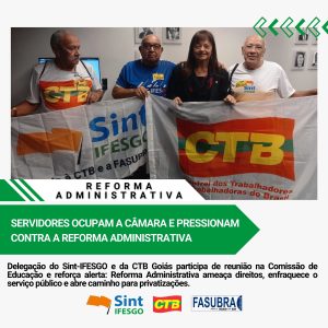 SINT-IFESGO E CTB GOIÁS ENVIAM COMISSÃO A BRASÍLIA E REFORÇAM MOBILIZAÇÃO NACIONAL CONTRA A REFORMA ADMINISTRATIVA
