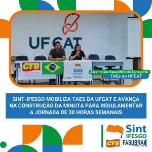 O Sint-IFESGO convoca as/os trabalhadoras/es técnico-administrativos em educação (TAEs) da Universidade Federal de Goiás para darmos continuidade à Assembleia Específica dos colegas da UFG, hoje, quarta-feira, 13 de agosto de 2025, às 14h, em formato híbrido. Vamos debater e deliberar sobre a implementação do ponto eletrônico na UFG. A atividade ocorre um