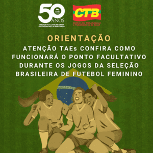ATENÇÃO TAEs CONFIRA COMO FUNCIONARÁ O PONTO FACULTATIVO DURANTE OS JOGOS DA SELEÇÃO BRASILEIRA DE FUTEBOL FEMININO