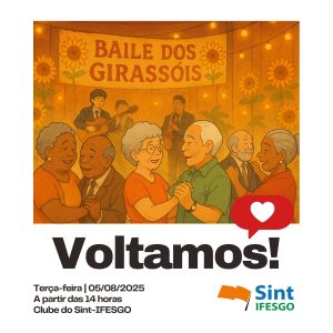 Amanhã, 05 de agosto, a partir das 14h, no Clube do Sint-IFESGO, vamos dançar juntos com muita energia e alegria, assim como o girassol que se move com a luz do sol! A entrada custa R$20,00 (vinte reais) e tem novidade: agora o clube aceita PIX, para maior comodidade! Dona Joana Rosa,