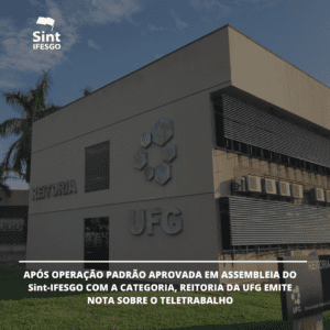 APÓS OPERAÇÃO PADRÃO APROVADA EM ASSEMBLEIA DO Sint-IFESGO COM A CATEGORIA, REITORIA DA UFG EMITE NOTA SOBRE O TELETRABALHO