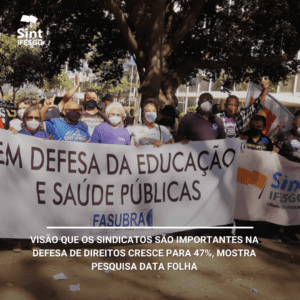 Visão que os sindicatos são importantes na defesa de direitos cresce para 47%, mostra pesquisa Data Folha. 📊 📉 A pesquisa também revelou que a reprovação das entidades sindicais caiu. Nossa luta é sentida e valorizada neste momento de duros ataques aos trabalhadores. “Diante da derrocada de direitos imposta a partir da
