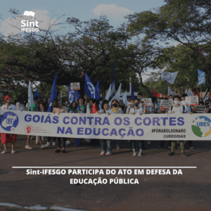 Na tarde da última quinta-feira (09), o Sint-IFESGO participou do ato em defesa da educação que aconteceu na Praça Universitária, em Goiânia. O ato foi puxado pelas entidades estudantis e contou com o apoio dos sindicatos, dos estudantes e da sociedade civil em geral. O ato foi uma resposta ao MEC
