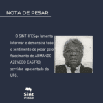 O SINT-IFESgo lamenta informar e demonstra todo o sentimento de pesar pelo falecimento de ARMANDO AZEVEDO CASTRO, servidor aposentado da UFG. #Luto