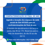 O Sint-IFESGO está com sua agenda de locação dos espaços da sede social para as confraternizações de final de ano. O horário de atendimento é