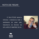 O Sint-IFESGO lamenta informar e demonstra todo o sentimento de pesar pelo falecimento do Servidor da UFG, WESLEY MARTINS SILVA. #Luto