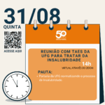 O Sint-IFESGO convoca todos os TAES da Universidade Federal de Goiás para a reunião que tratará da insalubridade, a reunião acontece na próxima quinta-feira (31/08),