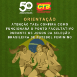 ATENÇÃO TAEs CONFIRA COMO FUNCIONARÁ O PONTO FACULTATIVO DURANTE OS JOGOS DA SELEÇÃO BRASILEIRA DE FUTEBOL FEMININO