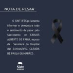 O SINT-IFESgo lamenta informar e demonstra todo o sentimento de pesar pelo falecimento de CARLOS ALBERTO DE FARIA, esposo da Servidora do Hospital das Clínicas/UFG,