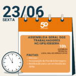 O Sint-IFESGO convoca os profissionais do HC/UFG/EBSERH a participarem da Assembleia Geral da Categoria que acontecerá na próxima sexta-feira (23), às 10h no hall de