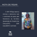 O SINT-IFESgo lamenta informar e demonstra todo o sentimento de pesar pelo falecimento da Servidora Aposentada do Hospital das Clínicas/UFG, EDIR GUALBERTO CAETANO. #luto #sintifesgo