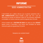 O Sint-IFESGO vem a público informar que na próxima quinta-feira (06) a SEDE ADMINISTRATIVA estará fechada a partir das 13h e que em decorrência