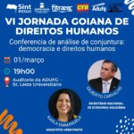 Nesta Quarta-Feira (01/03), ocorrerá no âmbito da IV Jornada Goiana de Direitos Humanos, a conferência de análise de conjuntura com o tema “Democracia e direitos