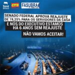 Senado federal aprova reajuste de 19,25% para os servidores da casa e nós do executivo estamos há 6 anos sem reajuste. Não vamos aceitar! #Reajustejá