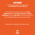 O Sint-IFESGO vem a público informar que a Sede Administrativa e o postinho de guias do Sindicato vão encerrar as atividades 1h antes