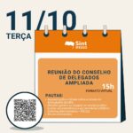 O Sint-IFESGO convida para a Reunião do Conselho de Delegados Ampliada. Será na próxima terça-feira (11/10) às 15h em formato virtual. Pautas: Apresentação e debate