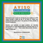 Durante o recesso acadêmico da UFG, o posto de guias localizado na universidade ficará temporariamente fechado. Fechamento: 07/07/2025 | Retorno: 11/08/2025 Para retirada de guias