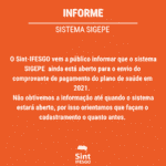 O Sint-IFESGO vem a público informar que o sistema SIGEPE ainda está aberto para o envio do comprovante de pagamento do plano de saúde em