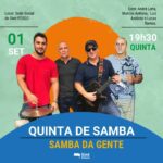 Na próxima quinta-feira (01), a Sede Social do Sint-IFESGO terá a Quinta de Samba (samba da gente), com os músicos: André Luiz, Marcos