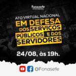 Atenção servidor, atenção servidora! Nesta quarta-feira, 24 de agosto, o Fonasefe e as entidades que o compõem realizam o Ato Nacional Virtual em Defesa dos Serviços