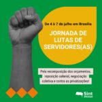 Participe da jornada de lutas de 4 à 7 de Julho em Brasília. Pela recomposição dos orçamentos, reposição salarial, negociação coletiva e contra as privatizações!