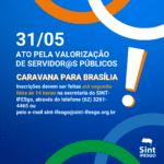 O Sint-IFESGO está com inscrições para participar da caravana para Brasília no dia 31/05, para se inscrever basta entrar em contato com a secretaria