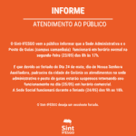 INFORME: AVISO SOBRE FUNCIONAMENTO DO Sint-IFESGO DURANTE O FERIADO