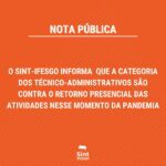 NOTA PÚBLICA: O SINT-IFESGO INFORMA QUE A CATEGORIA DOS TÉCNICO-ADMINISTRATIVOS SÃO CONTRA O RETORNO PRESENCIAL DAS ATIVIDADES NESSE MOMENTO DA PANDEMIA