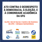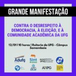SINT-IFESgo convoca toda a comunidade para o grande ato contra o desrespeito à democracia, à eleição e à comunidade acadêmica da UFG! Será amanhã (12)