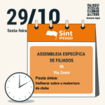 O SINT-IFESgo convida todas e todos os filiados para participarem da Assembleia Específica de Filiados que acontecerá no dia 29/10 (sexta-feira) às 9h, através do