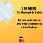 Este dia 5 de agosto, é marcado pelo Dia Nacional da Saúde, que reforça a luta da categoria pelos seus direitos, principalmente no momento atual,
