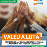 O Sint-IFESGO agradece aos colegas do setor de pessoal e pagamento da UFG, UFCAT, UFJ, IFG e IF Goiano pela agilidade e dedicação que possibilitaram