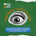 Hoje é o ÚLTIMO DIA para atualizar seu cadastro e garantir seu direito ao voto nas eleições sindicais 2025 do Sint-IFESGO! A votação será eletrônica