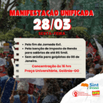 ✊🏽 MANIFESTAÇÃO UNIFICADA – 28/03 ✊🏽 📢 A luta é coletiva! No dia 28 de março (sexta-feira), às 16h, na Praça Universitária – Goiânia-GO, vamos