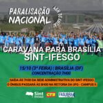 O Sint-IFESGO convoca todas e todos para participarem da caravana rumo à Brasília, que sairá amanhã, 15 de outubro de 2024, para o grande ato