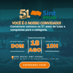 Comemorando 51 Anos de SINT-IFESgo Data: 18/08/2024 (Domingo) Local: Clube do Sindicato Horário de Início: 10h Venha participar e prestigiar o Torneio de Futebol Novos