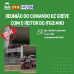 Atenção TAEs, na próxima quinta-feira (14) haverá reunião do comando de greve com o Reitor do IFGOIANO às 14h no Reitoria do IFGOIANO. Participem!