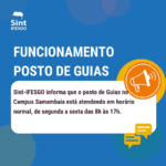 Sint-IFESGO informa que o posto de Guias no Campus Samambaia está atendendo em horário normal, de segunda a sexta das 8h às 17h.