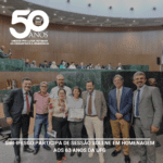 Na manhã desta quarta-feira (06), o Sint-IFESGO representado pelos coordenadores, Fernando Mota, João Pires e Michely Coutinho, estiveram presentes na ALEGO em sessão solene que
